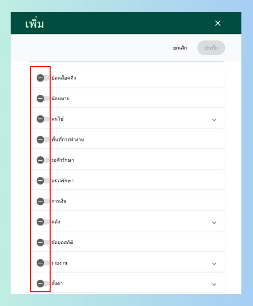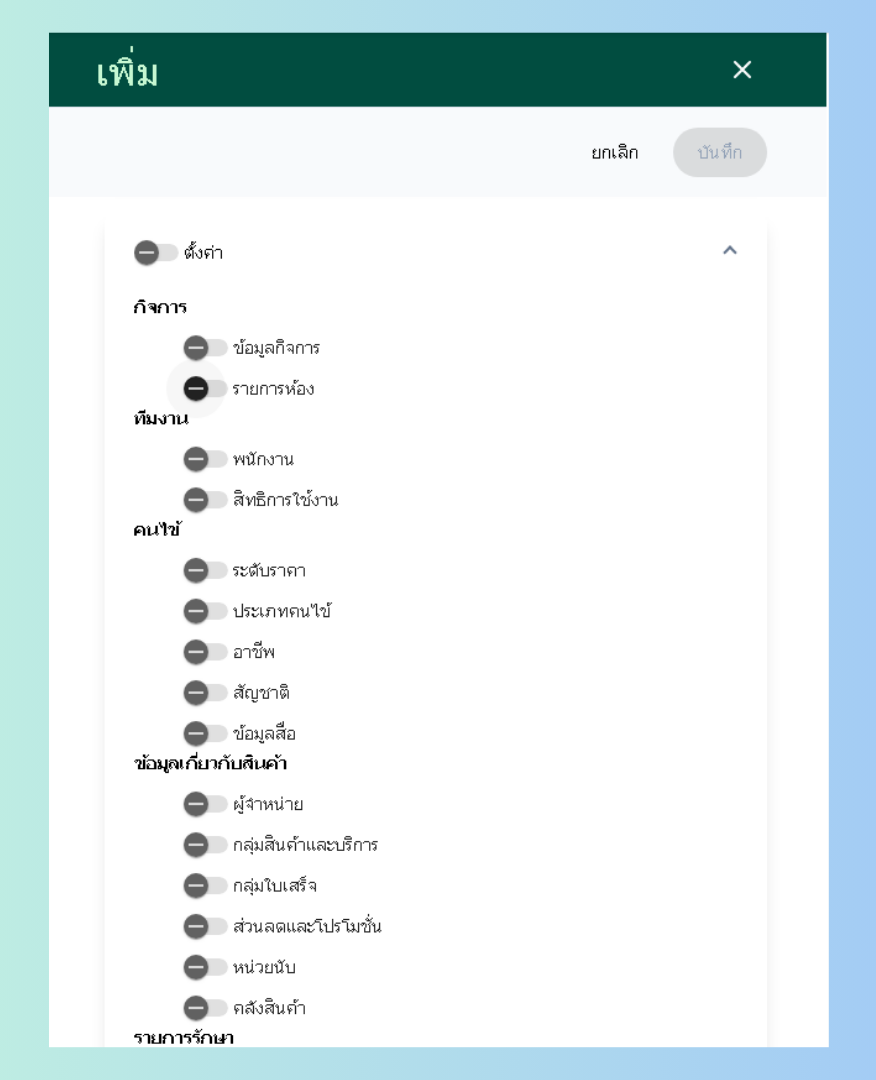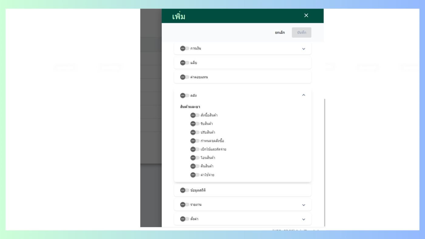 การเงิน เป็นการกำหนดสิทธิ์ให้ผู้ใช้งานสามารถใช้งานหน้าการเงินได้