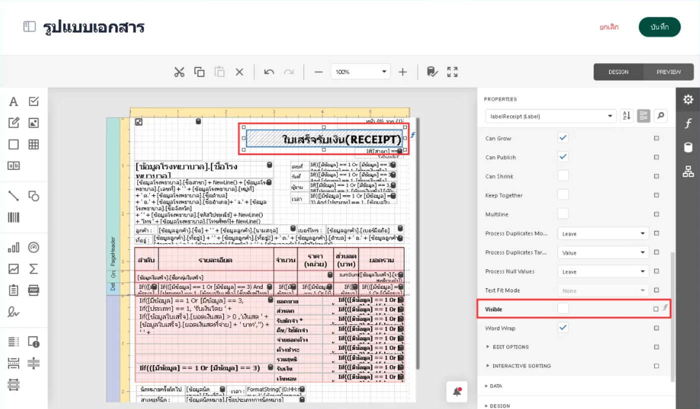 เลื่อนหาหัวข้อ Visible เอาเครื่องหมายติ้กถูกออก จะเป็นการปิดการแสดงผลเมื่อพิมพ์เอกสารจะไม่แสดงข้อความนั้น จากนั้นกดบันทึก