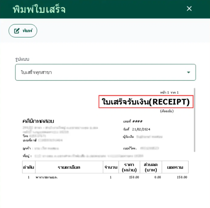 เลือกรูปแบบใบเสร็จที่ต้องการจากนั้นคลิก