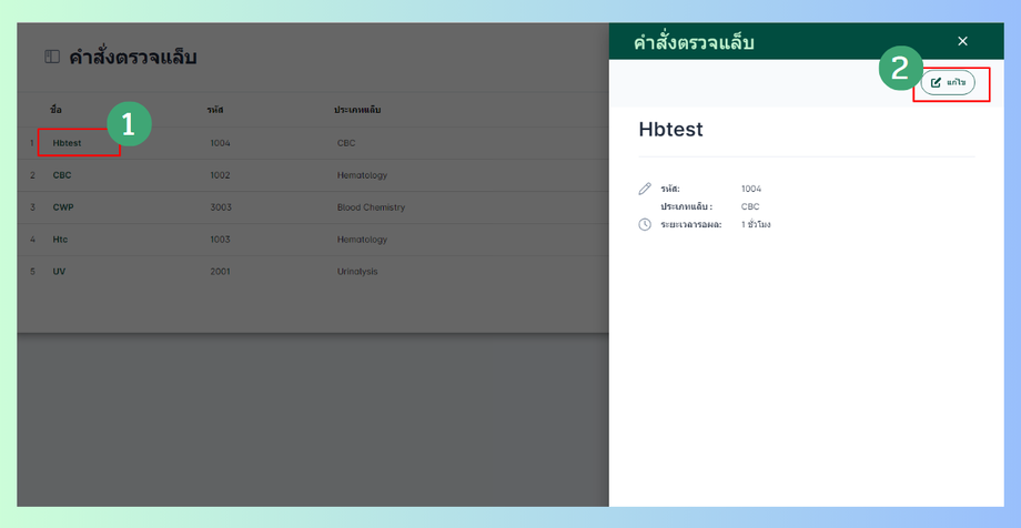 การดูรายละเอียดข้อมูล การแก้ไข และการลบคำสั่งตรวจแล็บ