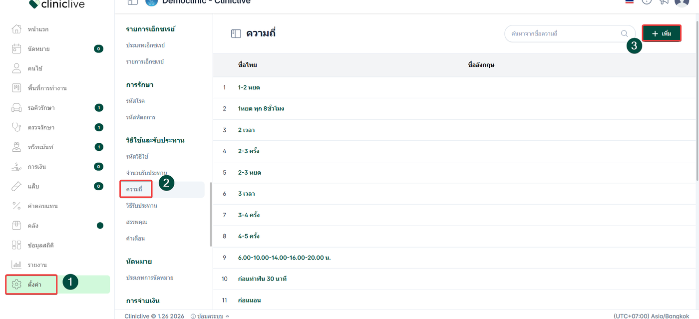 ผู้ใช้งานจะเข้าสู่หน้าความถี่ จากนั้นกดที่ปุ่ม +เพิ่ม