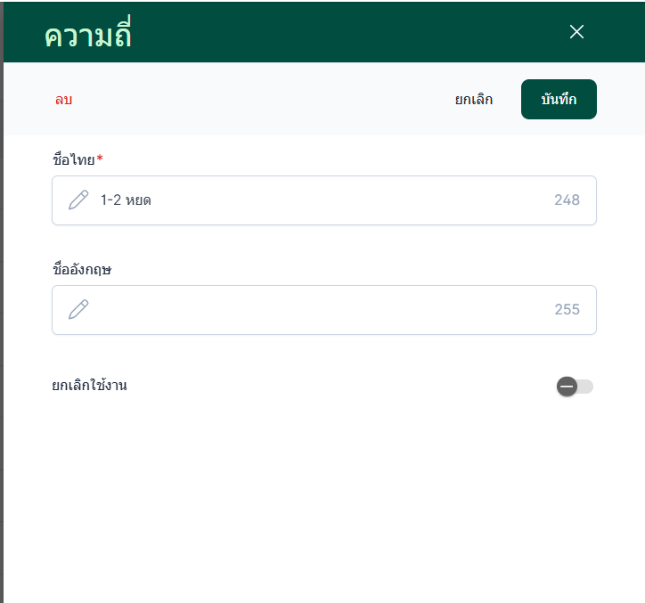 การยกเลิก : คือรายการจะยังอยู่ในระบบแต่แสดงสถานะยกเลิก