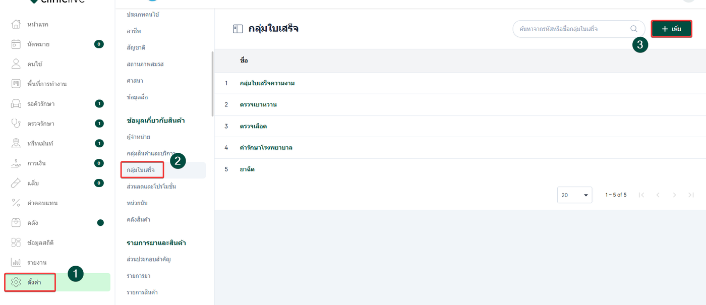 เลือกหัวข้อข้อมูลเกี่ยวกับสินค้า เลือกกลุ่มใบเสร็จ