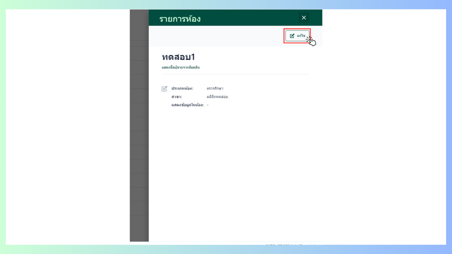 ระบบจะแสดงหน้าต่างข้อมูลรายการห้อง และกด"แก้ไข"