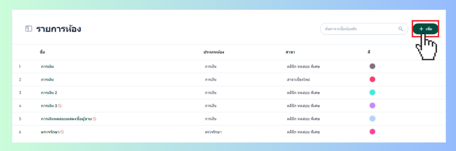เมื่อผู้ใช้งานเข้าถึงหน้ารายการห้อง "กดเพิ่ม"