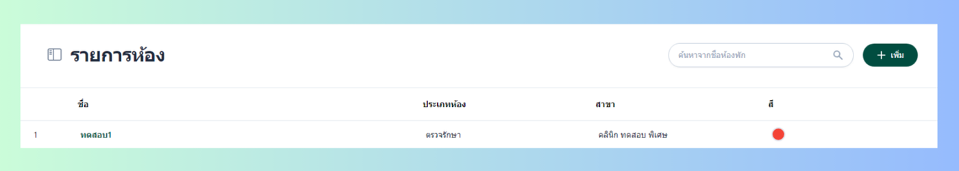 เมื่อมีการบันทึกข้อมูลเรียบร้อย จะแสดงรายการห้องที่สร้างใหม่ดังนี้