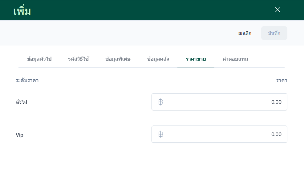 ราคาขาย สามารถเลือกจัดการราคาแต่ละประเภทได้