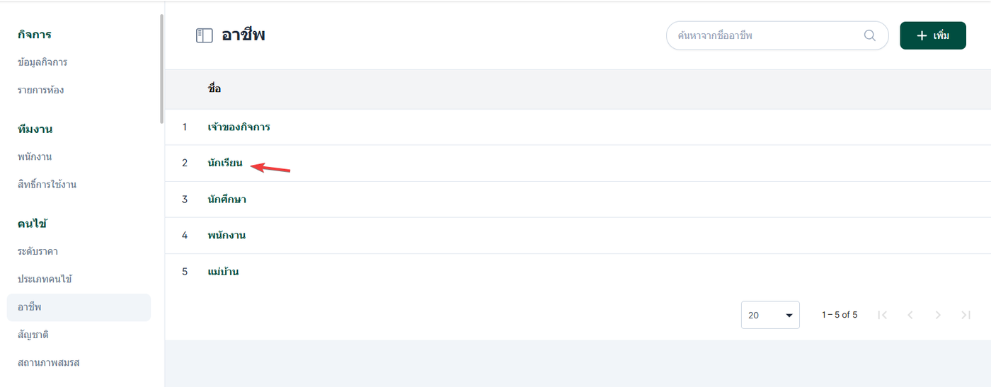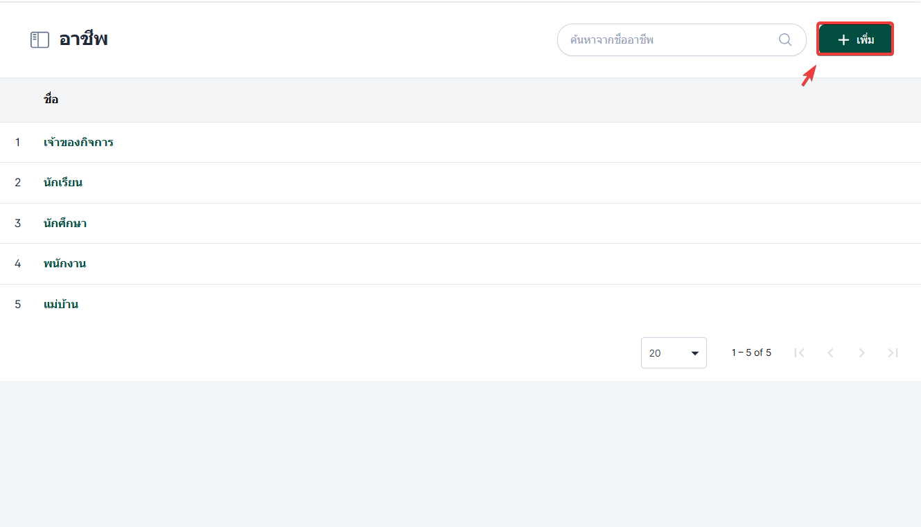 เมื่อผู้ใช้อยู่ในหน้าอาชีพ คลิกปุ่ม"เพิ่ม"ที่มุมขวาบน