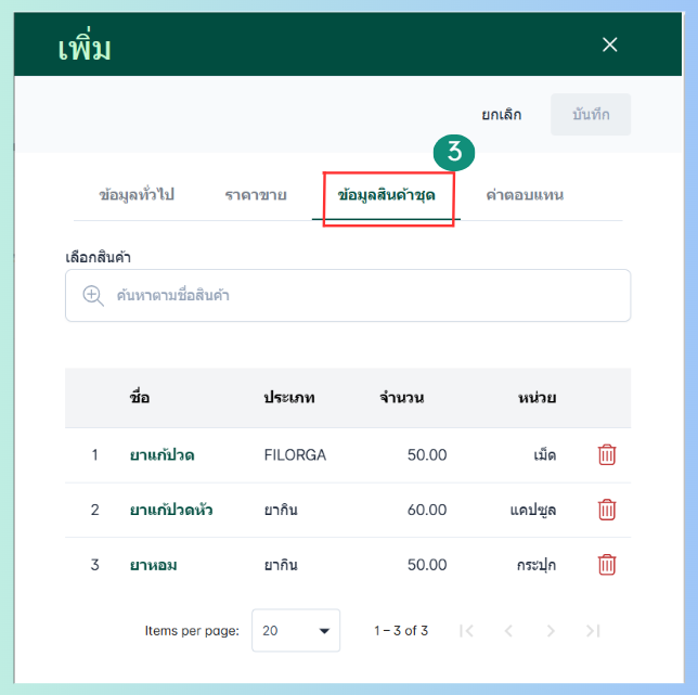 "การตั้งค่ารายการชุด ช่วยให้คุณรวมรายการสินค้าหรือยาหลายรายการเข้าด้วยกันเป็น 1 รายการชุด