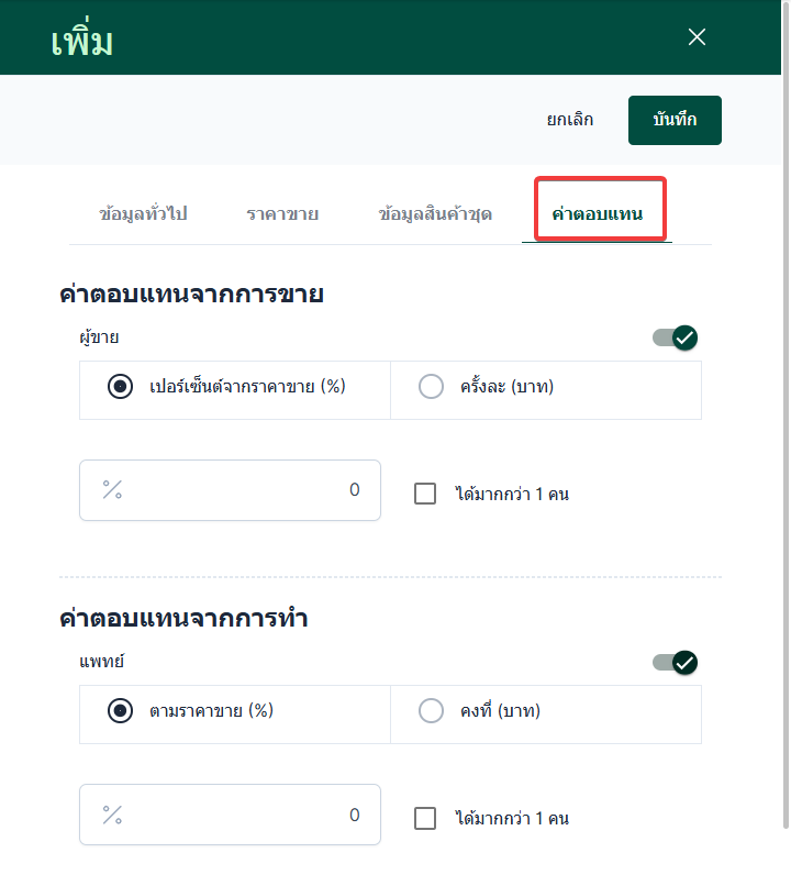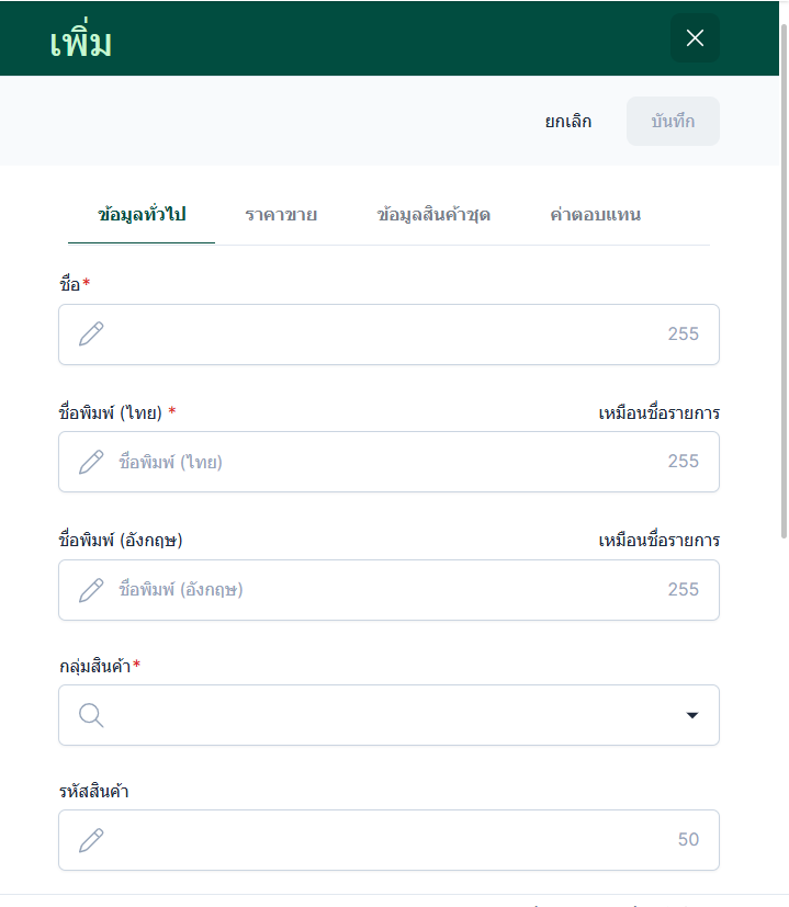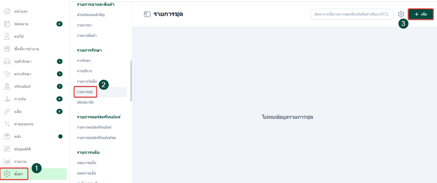 เมื่อผู้ใช้เข้าสู่หน้ารายการชุดกดคลิกปุ่ม +เพิ่ม จากนั้นระบบจะให้กรอกข้อมูล