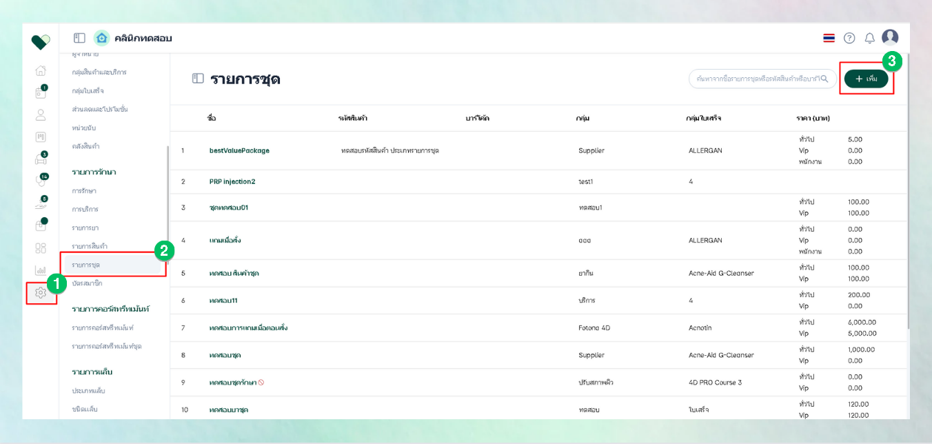เมื่อผู้ใช้เข้าสู่หน้ารายการชุดกดคลิกปุ่มเพิ่ม จากนั้นระบบจะให้กรอกข้อมูล