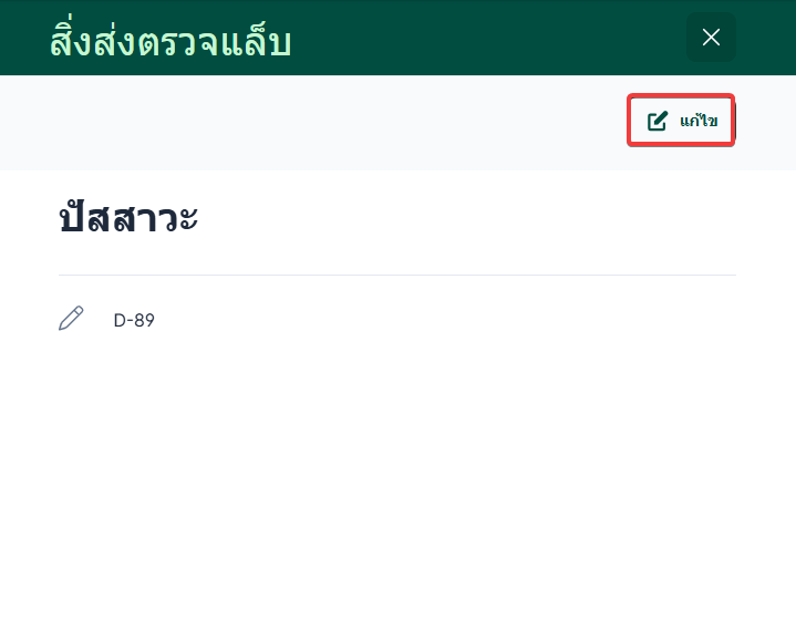 แก้ไขข้อมูลสิ่งส่งตรวจ