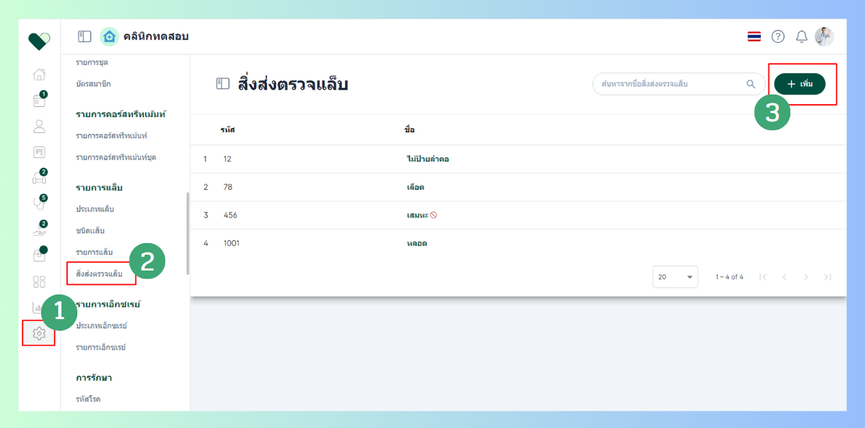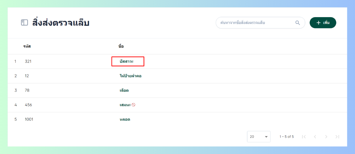 การเพิ่มสิ่งส่งตรวจแล็บ