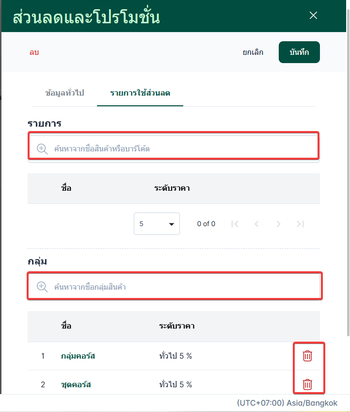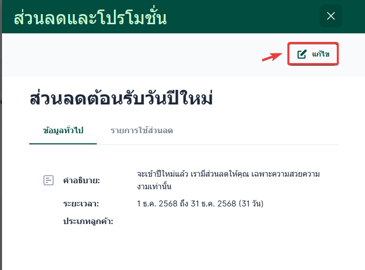 แก้ไขรายการใช้ส่วนลดโปรโมชั่น