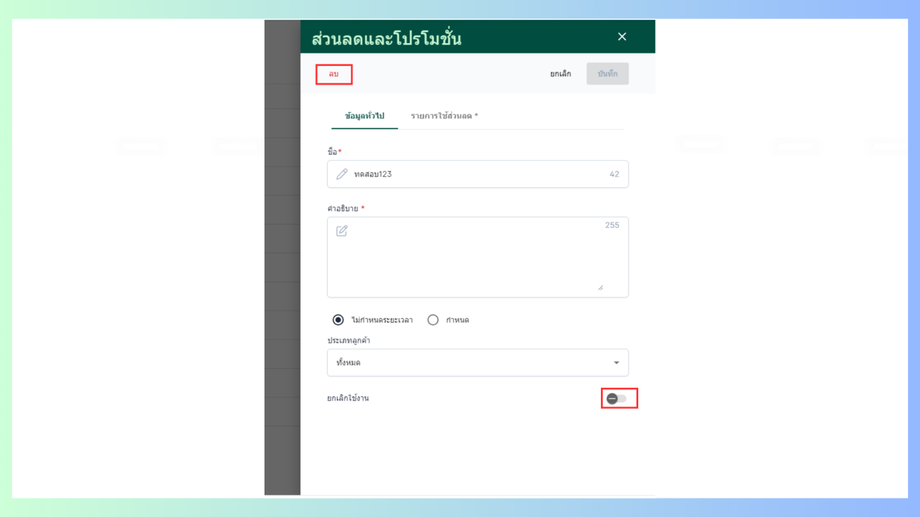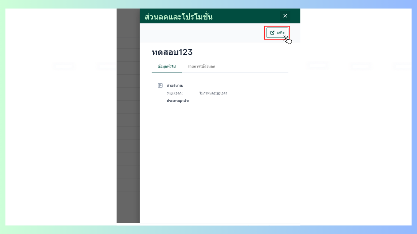 แก้ไขข้อมูลทั่วไปของโปรโมชั่น
