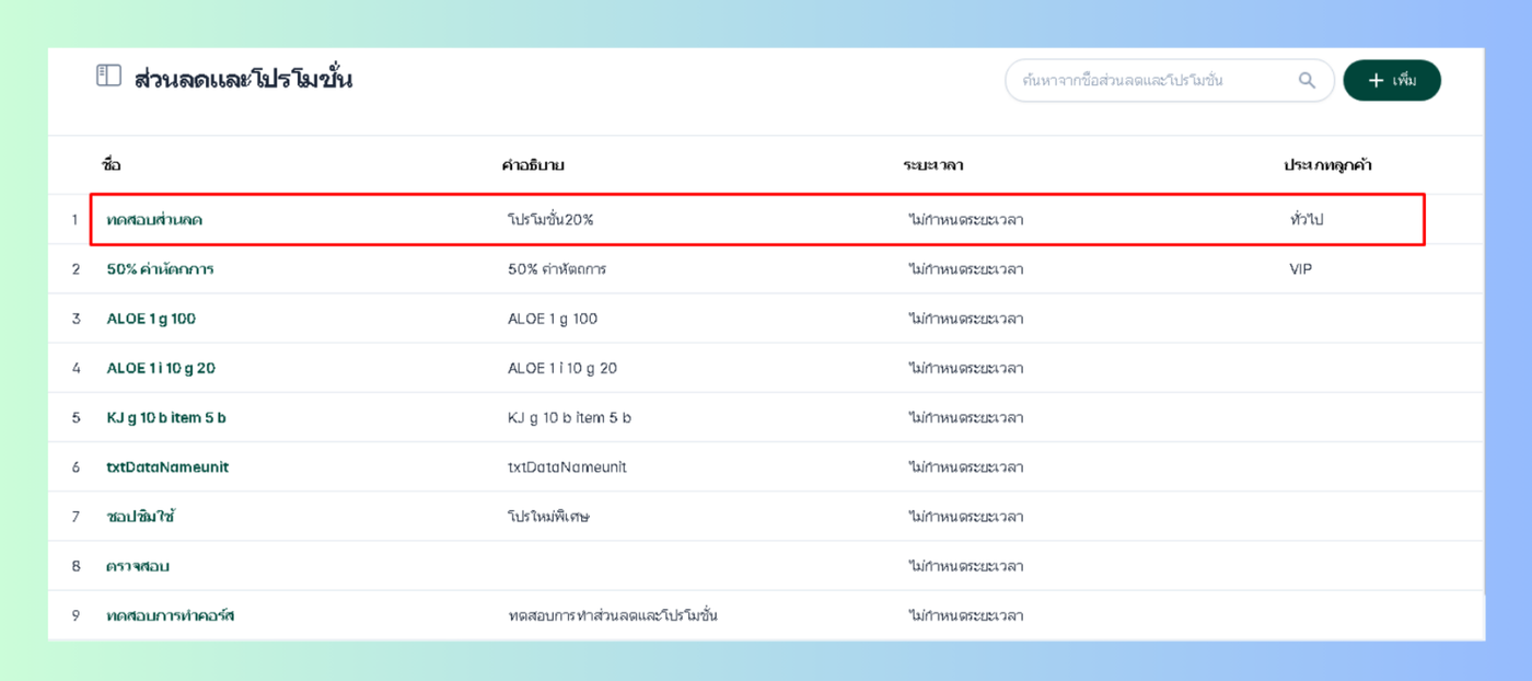 เพิ่มส่วนลดและโปรโมชั่น