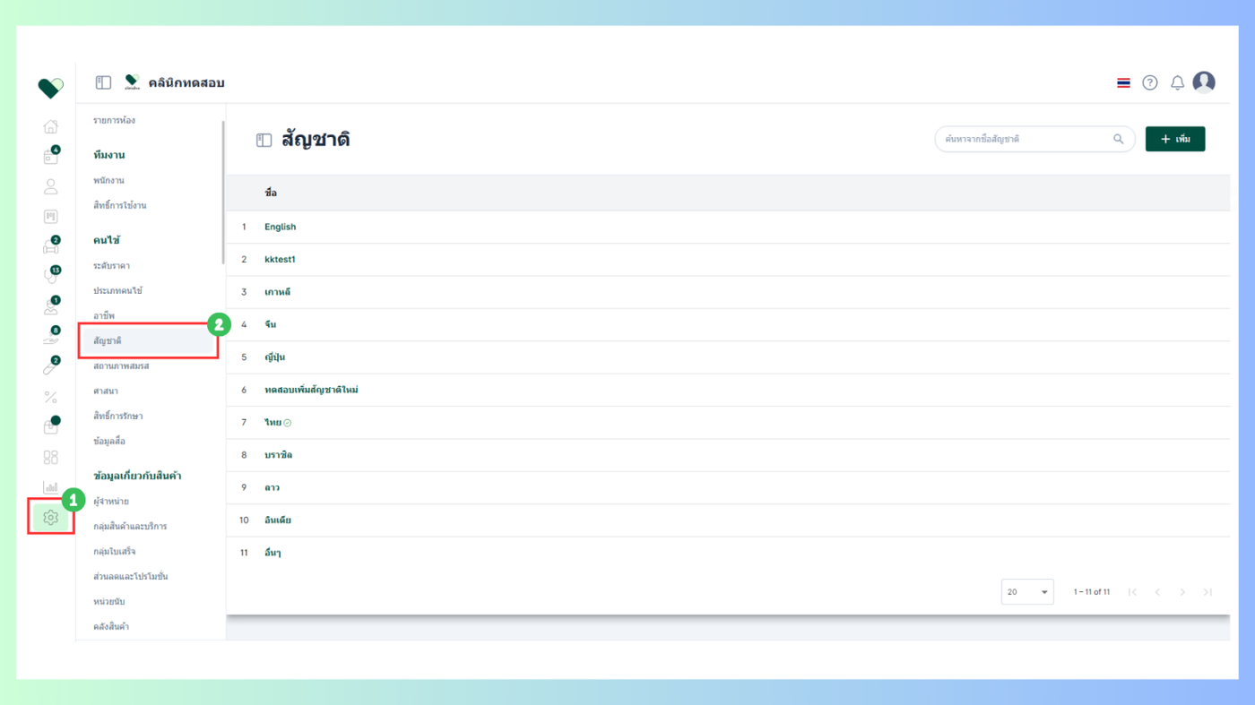 การตั้งค่าข้อมูลสัญชาติจะแสดงเมื่อมีการเลือกสัญชาติในขั้นตอนการเพิ่มและแก้ไขคนไข้ เพิ่มทำการเก็บข้อมูลทางการตลาด