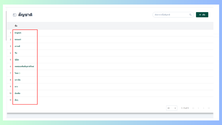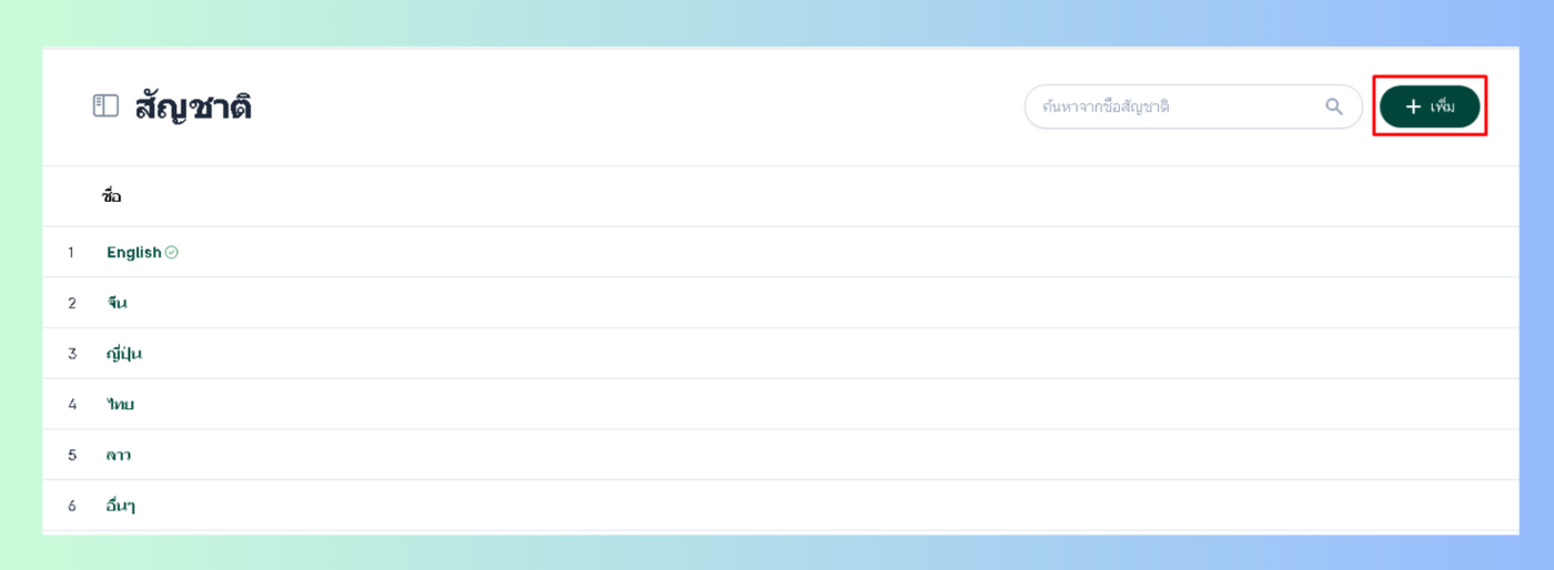 เมื่อผู้ใช้อยู่ในหน้าสัญชาติ คลิกปุ่มเพิ่ม