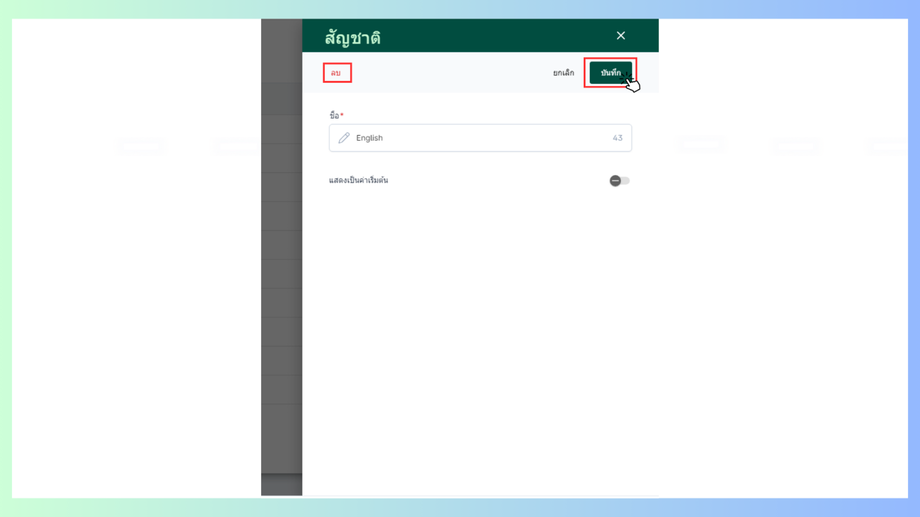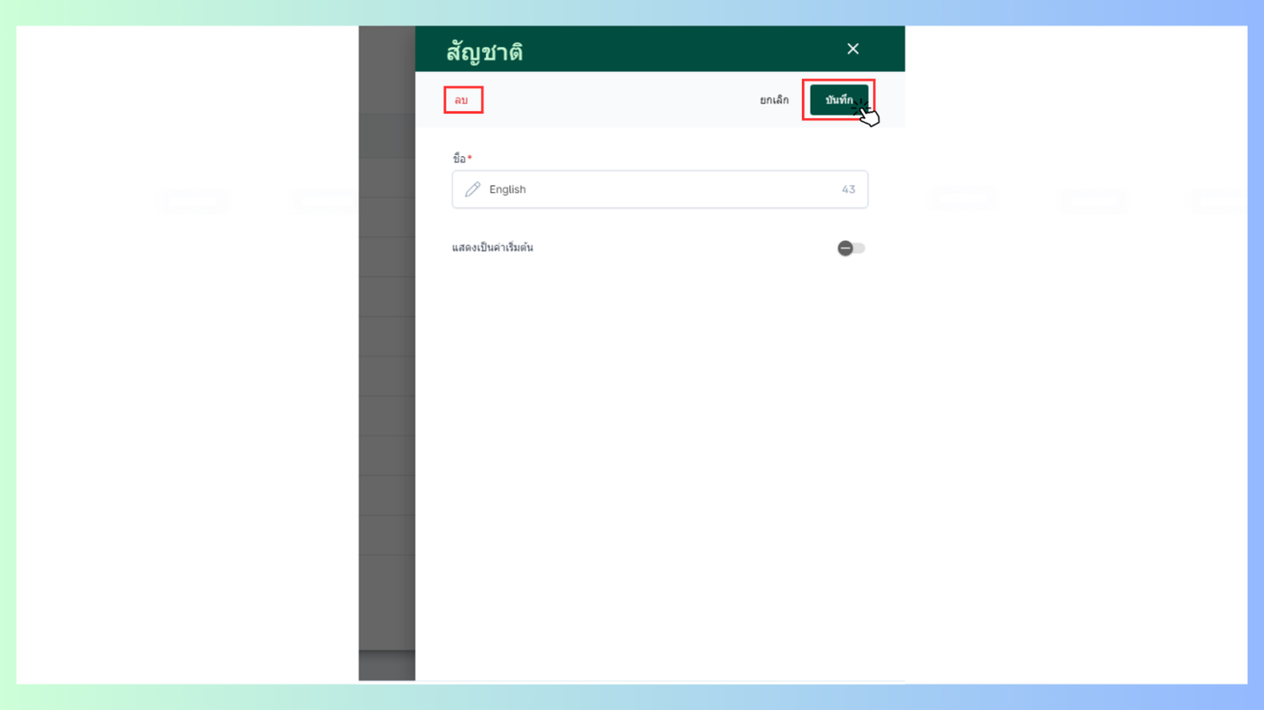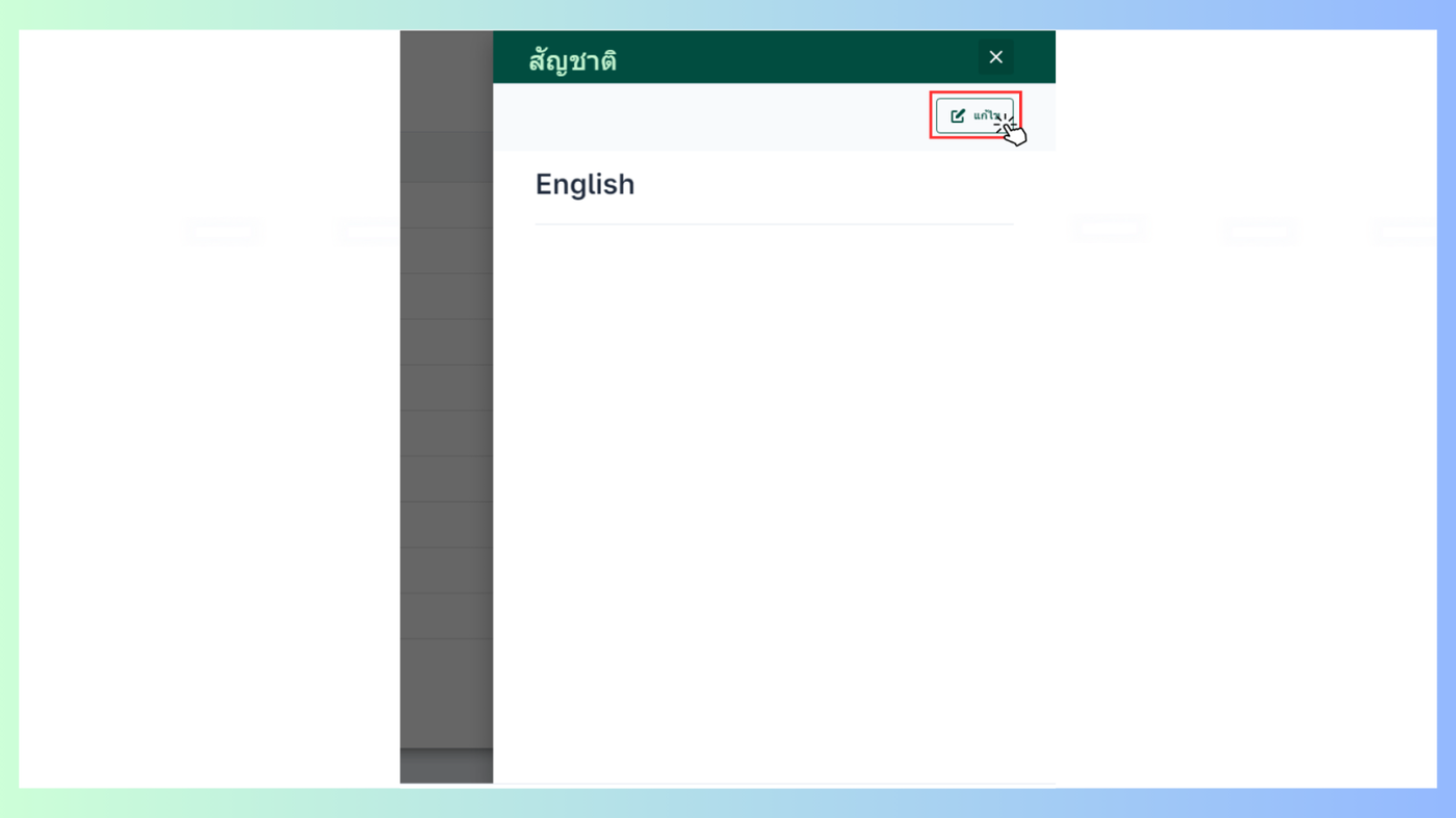 เมื่อผู้ใช้อยู่ในหน้าสัญชาติ เลือกสัญชาติที่ต้องการแก้ไขจะมีหน้าต่างแสดงข้อมูลขึ้นมา > แก้ไข