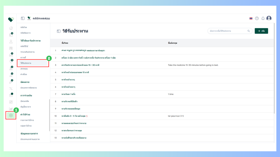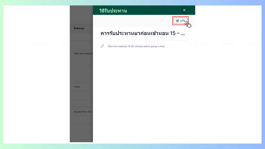 เมื่อผู้ใช้อยู่ในหน้าส่วนวิธีรับประทานคลิก เลือกวิธีรับประทานที่ต้องการแก้ไข