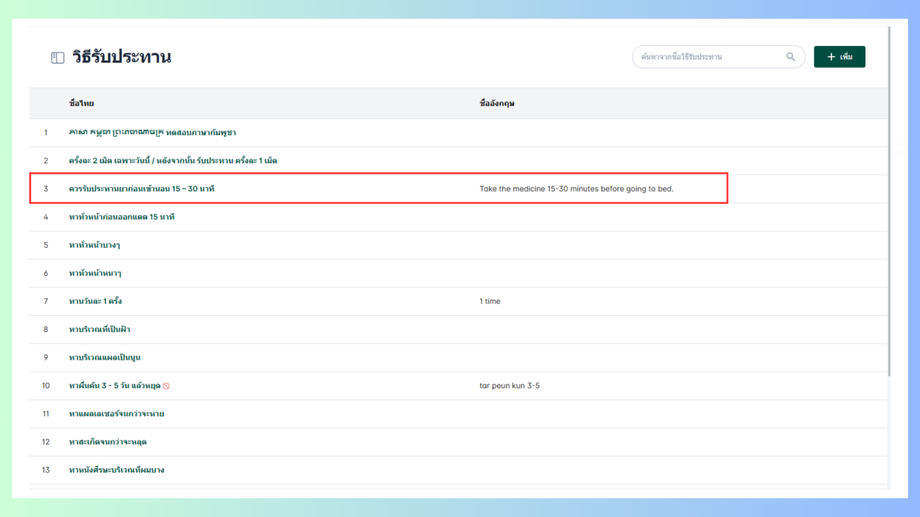 ผู้ใช้งานจะเข้าสู่หน้าเพิ่มวิธีรับประทาน