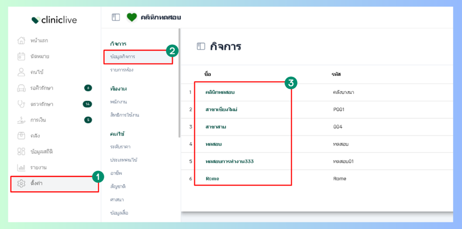 การตั้งค่าเวลาทำการของคลินิก เป็นการตั้งค่าการเปิดทำการและปิดทำการเมื่อทำการของคลินิกในแต่ละวัน