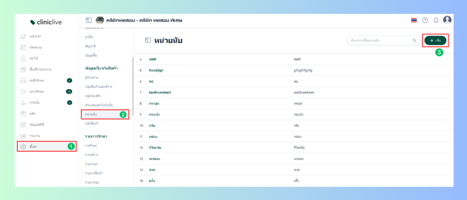 การตั้งค่าหน่วยนับเป็นขั้นตอนสำคัญที่ช่วยให้ระบบจะแสดงการเลือกหน่วยนับในขั้นตอน การจัดการสินค้าและบริการต่างๆ เช่น ml.