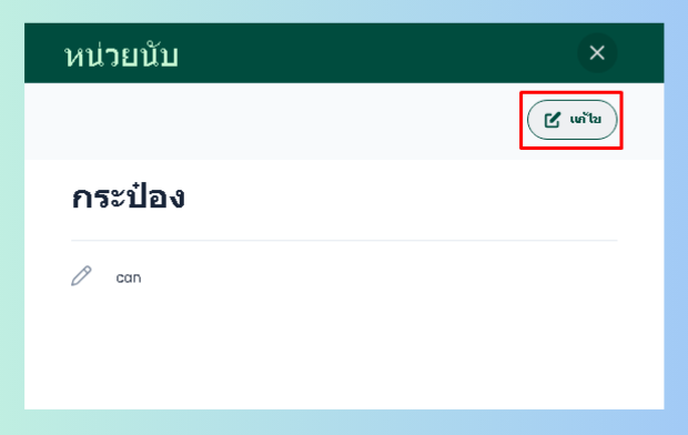 เมื่อผู้ใช้อยู่ในหน้าหน่วยนับ เลือกหน่วยนับที่ต้องการแก้ไขจะมีหน้าต่างแสดงข้อมูลขึ้นมา > แก้ไข