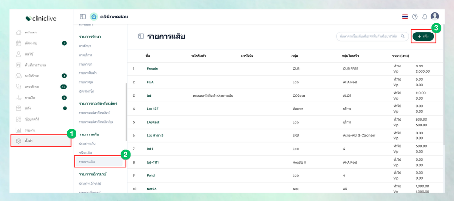สามารถแก้ไขราคารายการแล็บทั้งหมดได้โดยคิดเพิ่มเป็น %