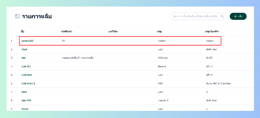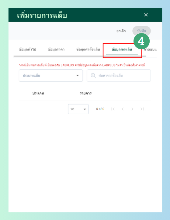 4. ข้อมูลแล็บ เลือกประเภทแล็บ และค้นหาชื่อแล็บที่ต้องการ
