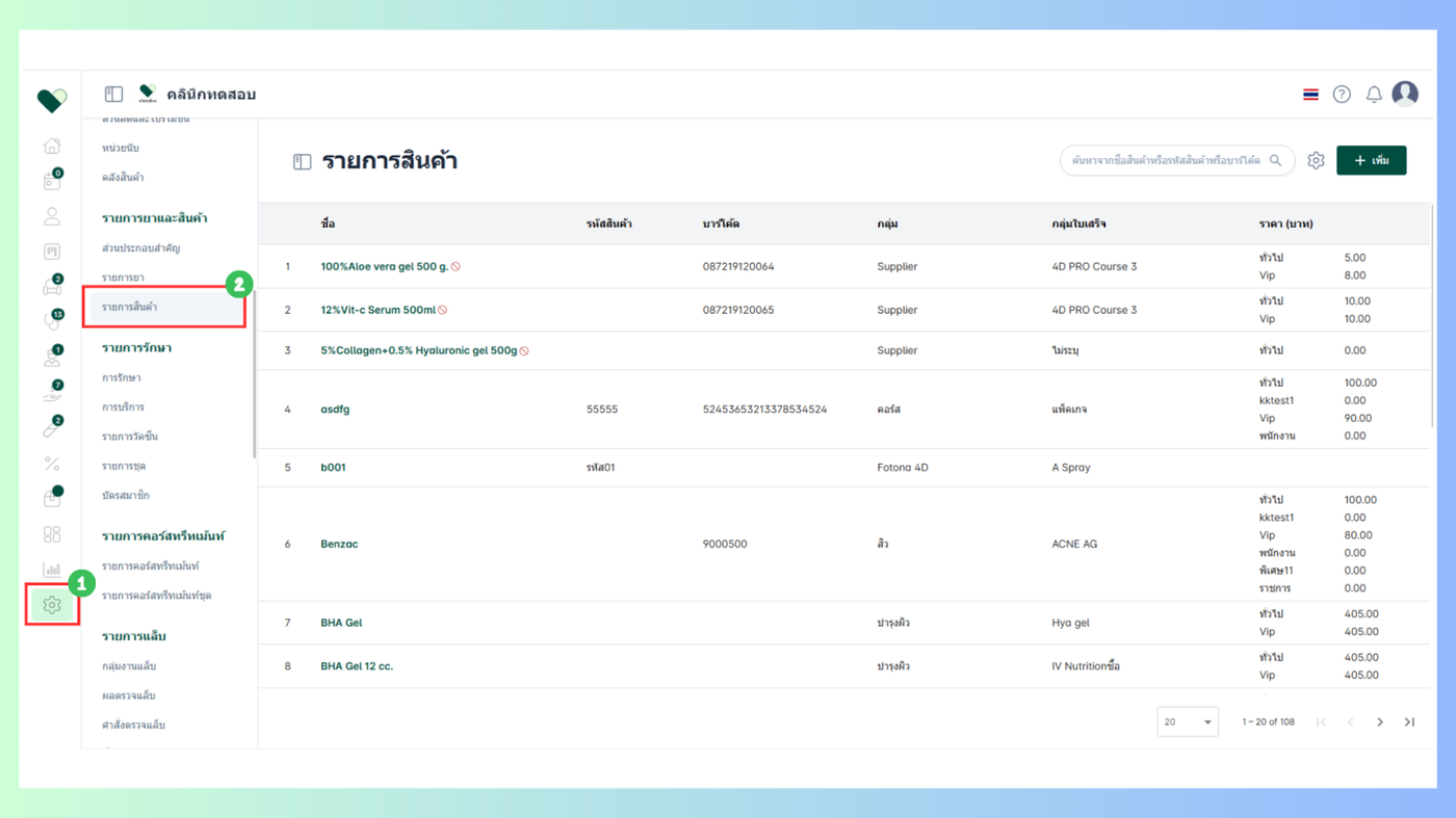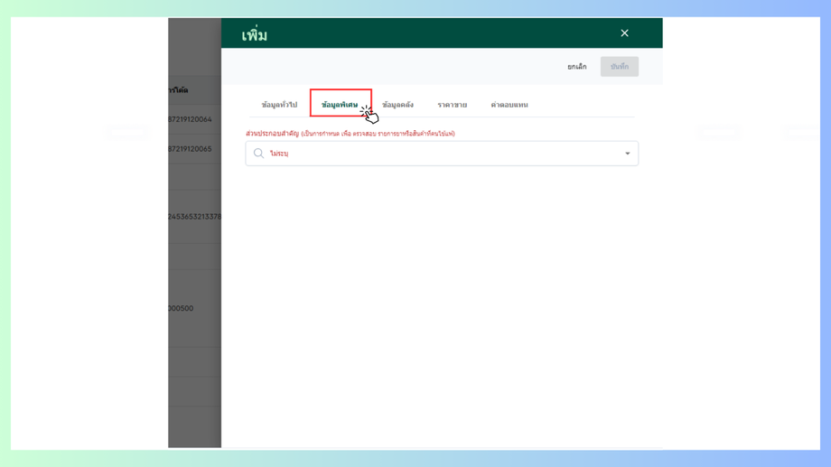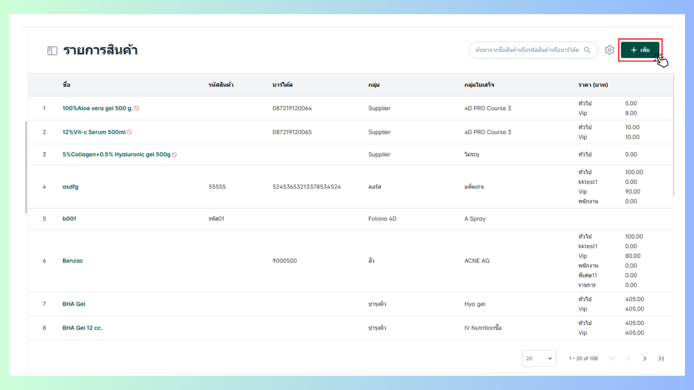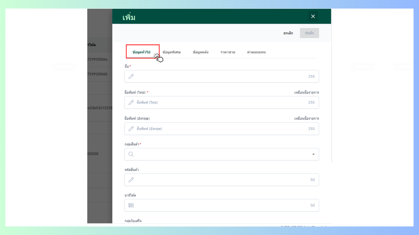 เมื่อผู้ใช้อยู่ในหน้ารายการสินค้าคลิก +เพิ่มที่มุมขวาบน