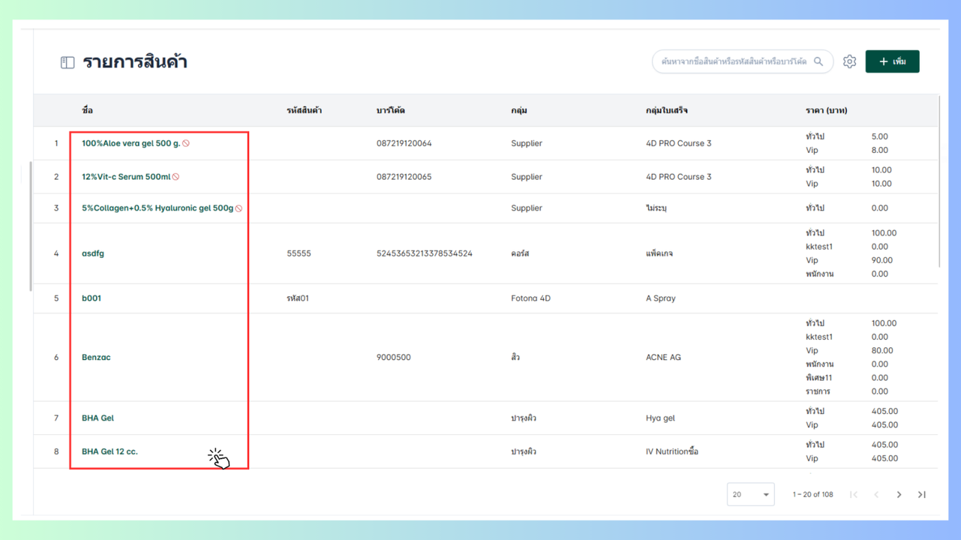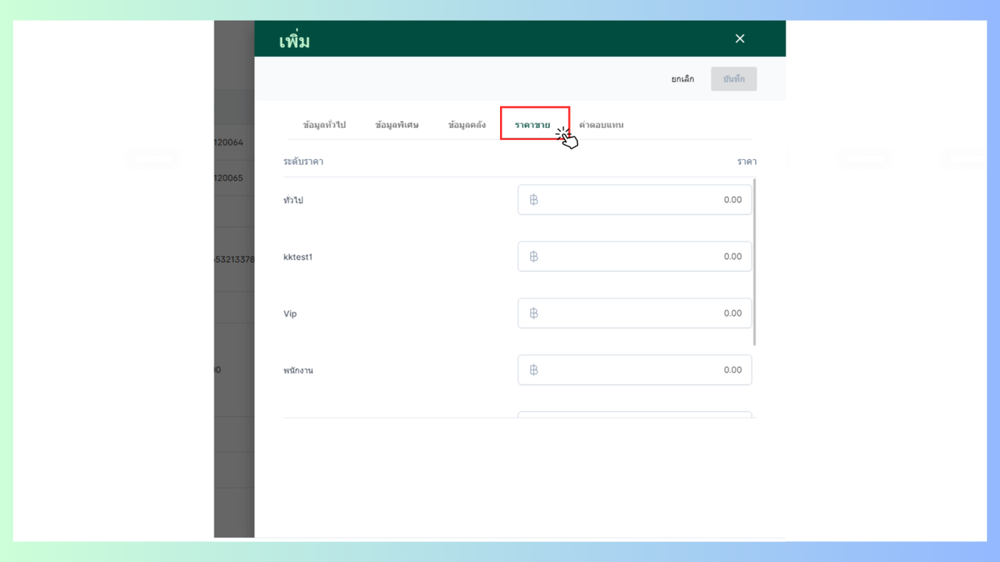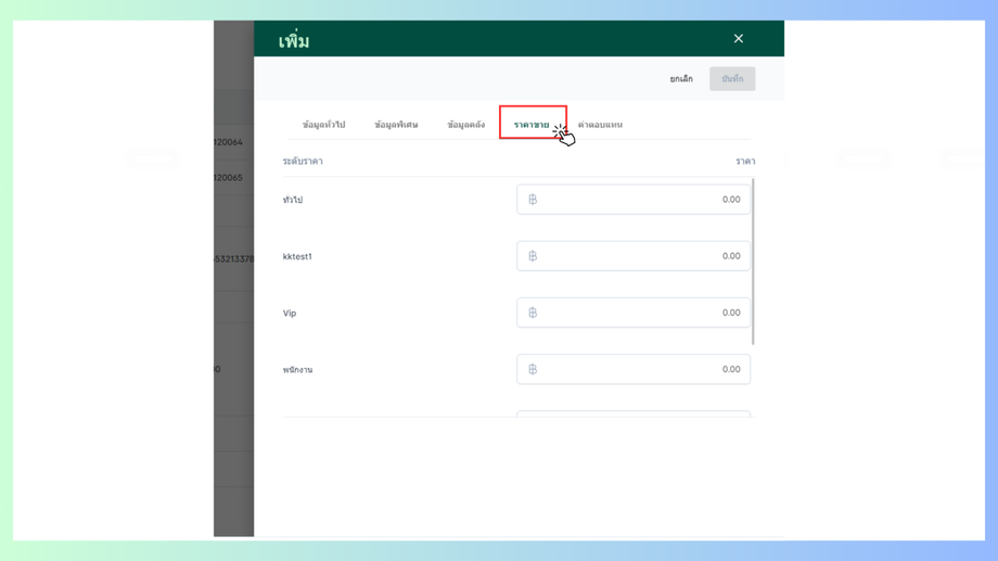 - ราคาขายสามารถปรับแก้ไขข้อมูลได้