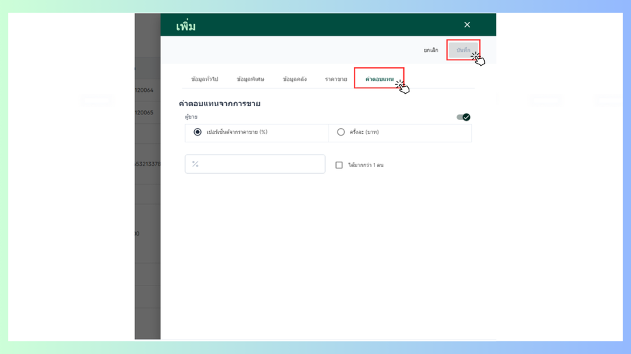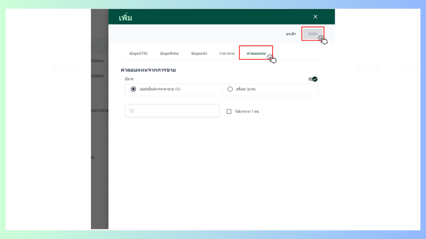 - ค่าตอบแทนสามารถเปิด-ปิดและแก้ไขข้อมูลได้