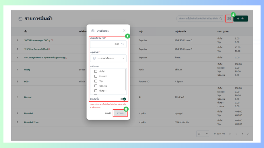 สามารถแก้ไขราคารายการสินค้าได้ทั้งหมดทีเดียวโดยคิดเป็น %
