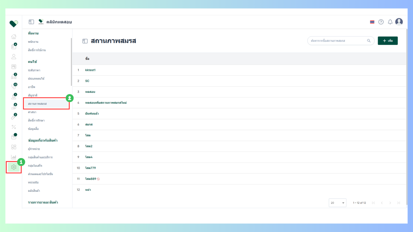 การตั้งค่าข้อมูลสถานภาพจะแสดงเมื่อมีการเลือกสถานภาพในขั้นตอนการเพิ่มและแก้ไขคนไข้ เพิ่มทำการเก็บข้อมูลทางการตลาด