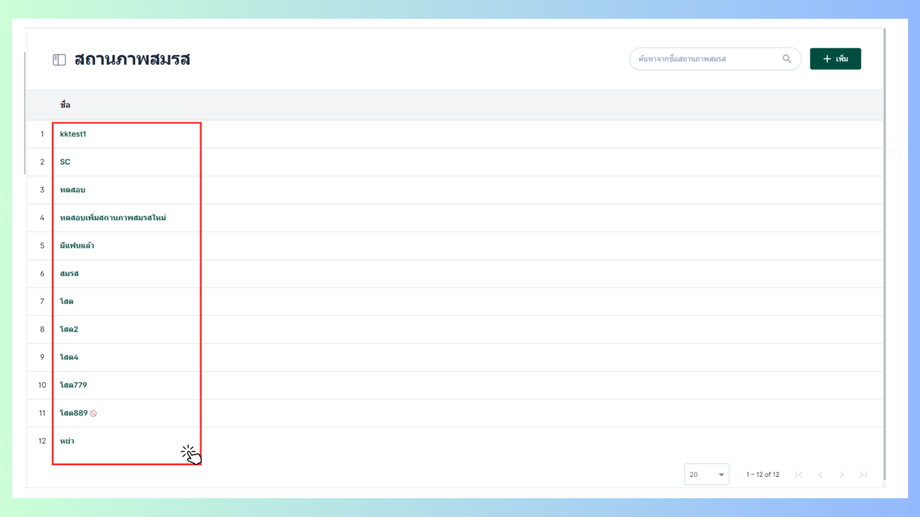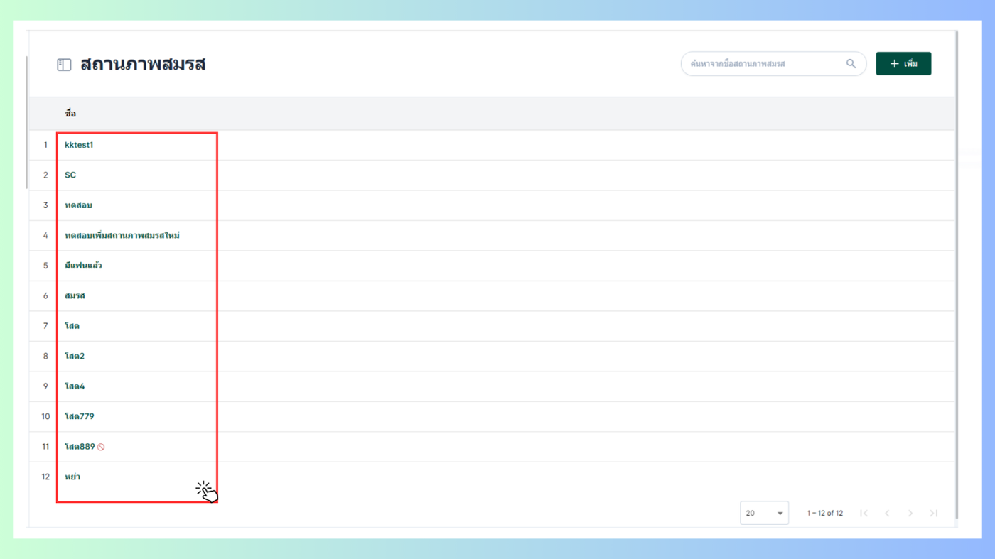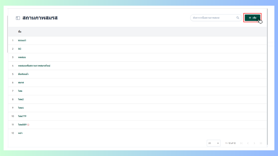 เมื่อผู้ใช้อยู่ในหน้าสถานภาพสมรส คลิกปุ่มเพิ่ม