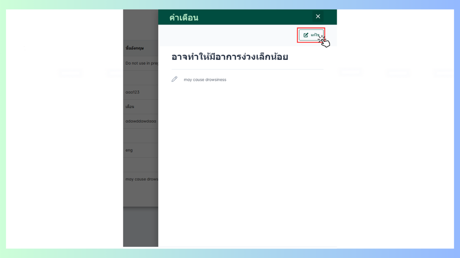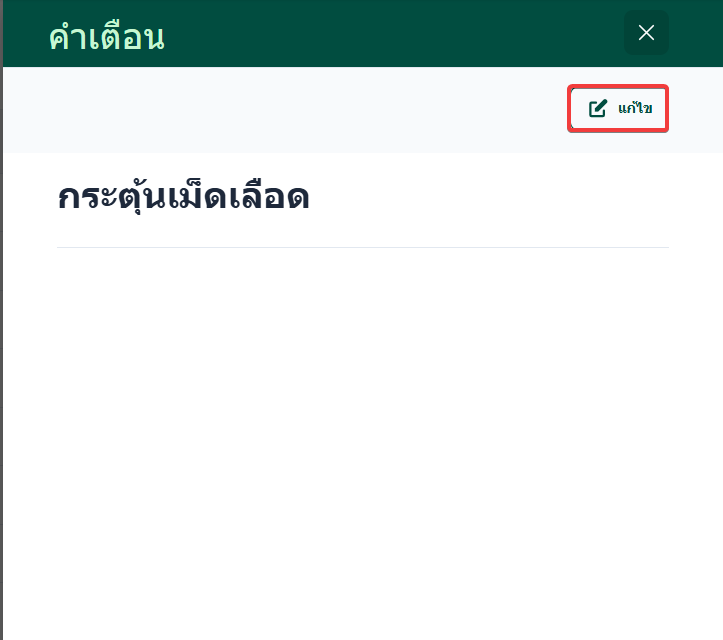 เมื่อผู้ใช้อยู่ในหน้าคำเตือนคลิก เลือกคำเตือนที่ต้องการแก้ไข