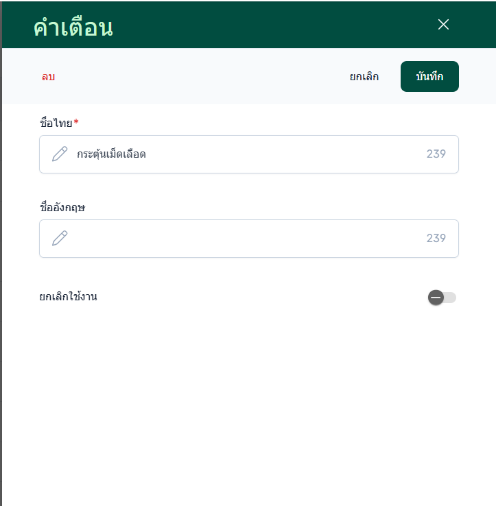 การยกเลิก : คือรายการจะยังอยู่ในระบบแต่แสดงสถานะยกเลิก