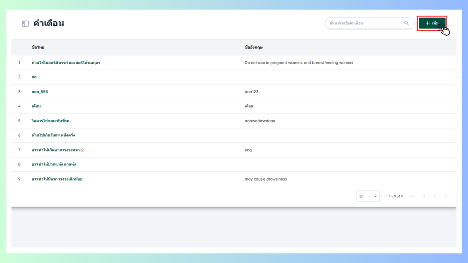 ผู้ใช้งานจะเข้าสู่หน้าคำเตือน จากนั้นกดที่ปุ่มเพิ่มทางด้านขวา