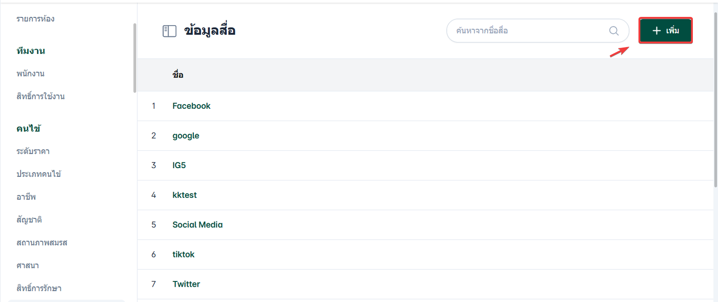 ข้อมูลสื่อ คือ แหล่งที่มาของลูกค้าหรือคนไข้ว่าเข้ามาใช้บริการเรานั้น ได้เห็นข้อมูลที่ทำการเราจะข้อมูลสื่อหรือทราบมาจากส่วนไหน การตั้งค่าข้อมูลสื่อจะแสดงเมื่อมีการเลือกข้อมูลสื่อในการเพิ่มคนไข้ เพิ่มทำการเก็บข้อมูลทางการตลาด