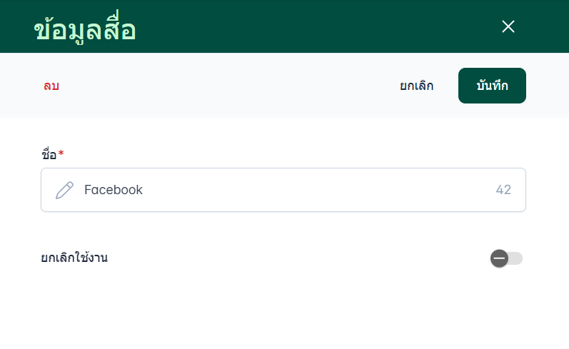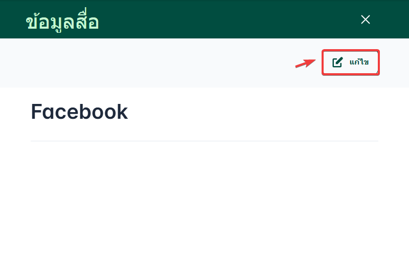 เมื่อผู้ใช้อยู่ในหน้าตั้งค่าข้อมูลสื่อ เลือกข้อมูลสื่อที่ต้องการแก้ไขจะมีหน้าต่างแสดงข้อมูลขึ้นมา