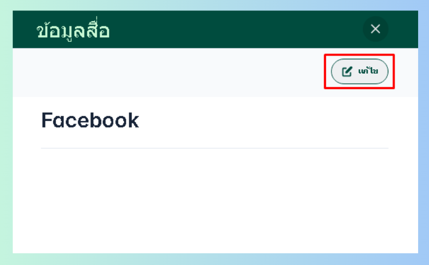 เมื่อผู้ใช้อยู่ในหน้าตั้งค่าข้อมูลสื่อ เลือกข้อมูลสื่อที่ต้องการแก้ไขจะมีหน้าต่างแสดงข้อมูลขึ้นมา > แก้ไข