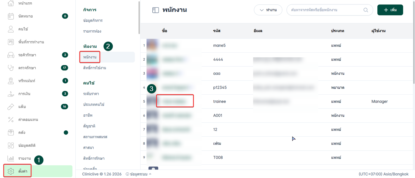 จากนั้นไปที่หัวข้อทีมงาน เลือกพนักงาน