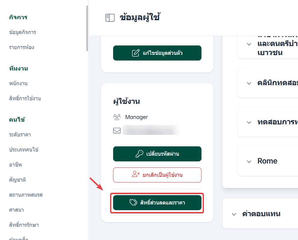 หากผู้ใช้งานที่กำลังล็อกอินอยู่ต้องการกำหนดสิทธิ์ส่วนลดและราคาของตนเอง เพียงเข้ามาที่หน้าตั้งค่าก็จะสามารถกำหนดสิทธิ์ส่วนลดและราคาได้เลย