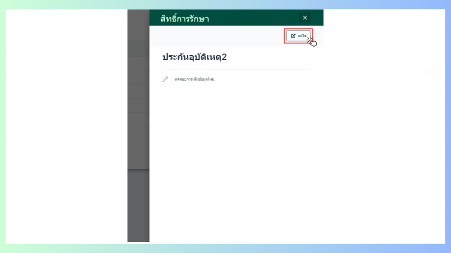 - เมื่อผู้ใช้อยู่ในหน้าสิทธิ์การรักษาคลิก เลือกสิทธิ์การรักษาที่ต้องการแก้ไข