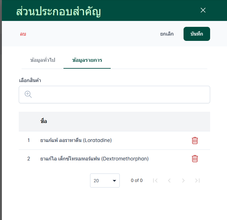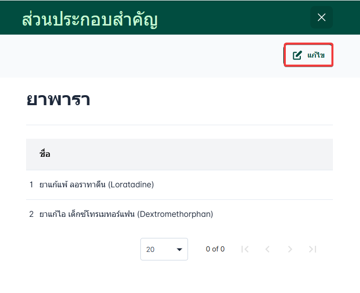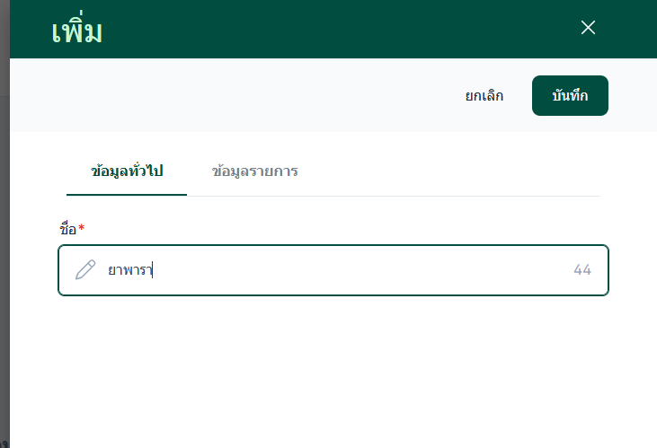 ข้อมูลรายการ เพิ่มชื่อยาที่มีส่วนประกอบของพาราเซตามอล