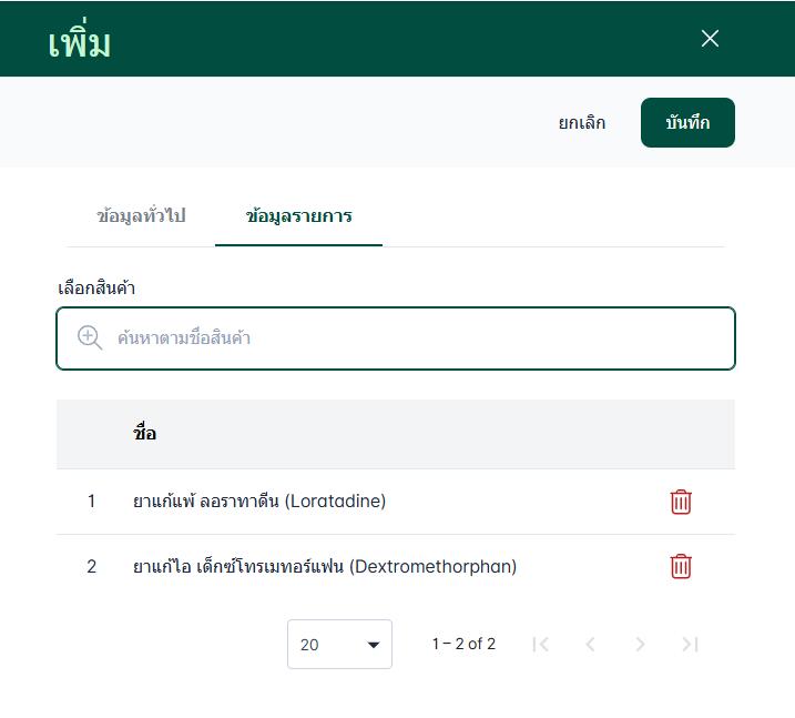 ข้อมูลรายการ สามารถลบหรือเพิ่มรายการสินค้าได้