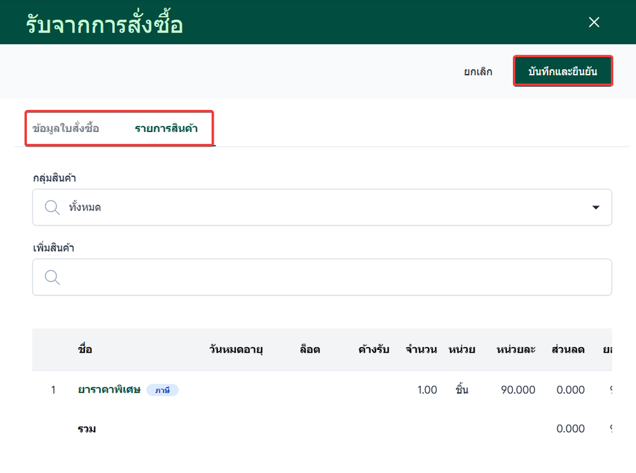 จากนั้นเลือก รับสินค้า