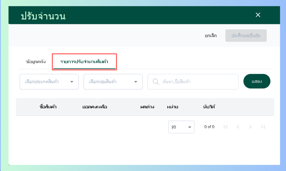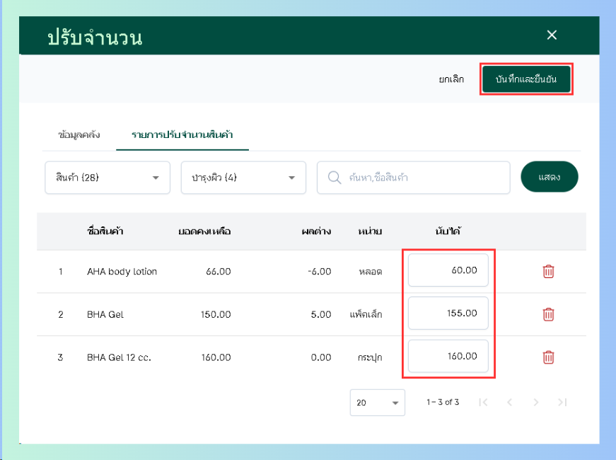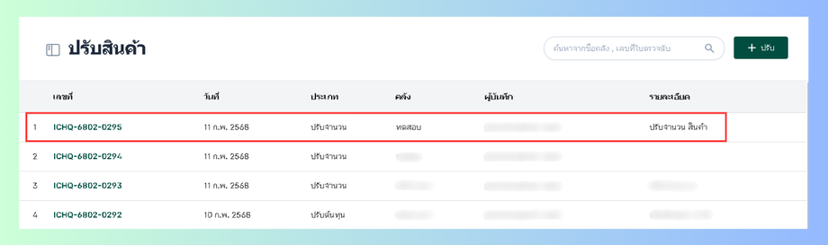 จากนั้นไปหน้ารายการปรับจำนวนสินค้า
