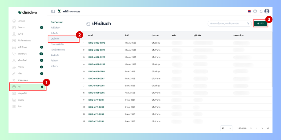 ปรับจำนวน กรณีจำนวนสินค้าในระบบผิดหรือไม่ตรงกับคลังจริงของคลินิก สามารถทำการปรับจำนวนให้ถูกต้องได้